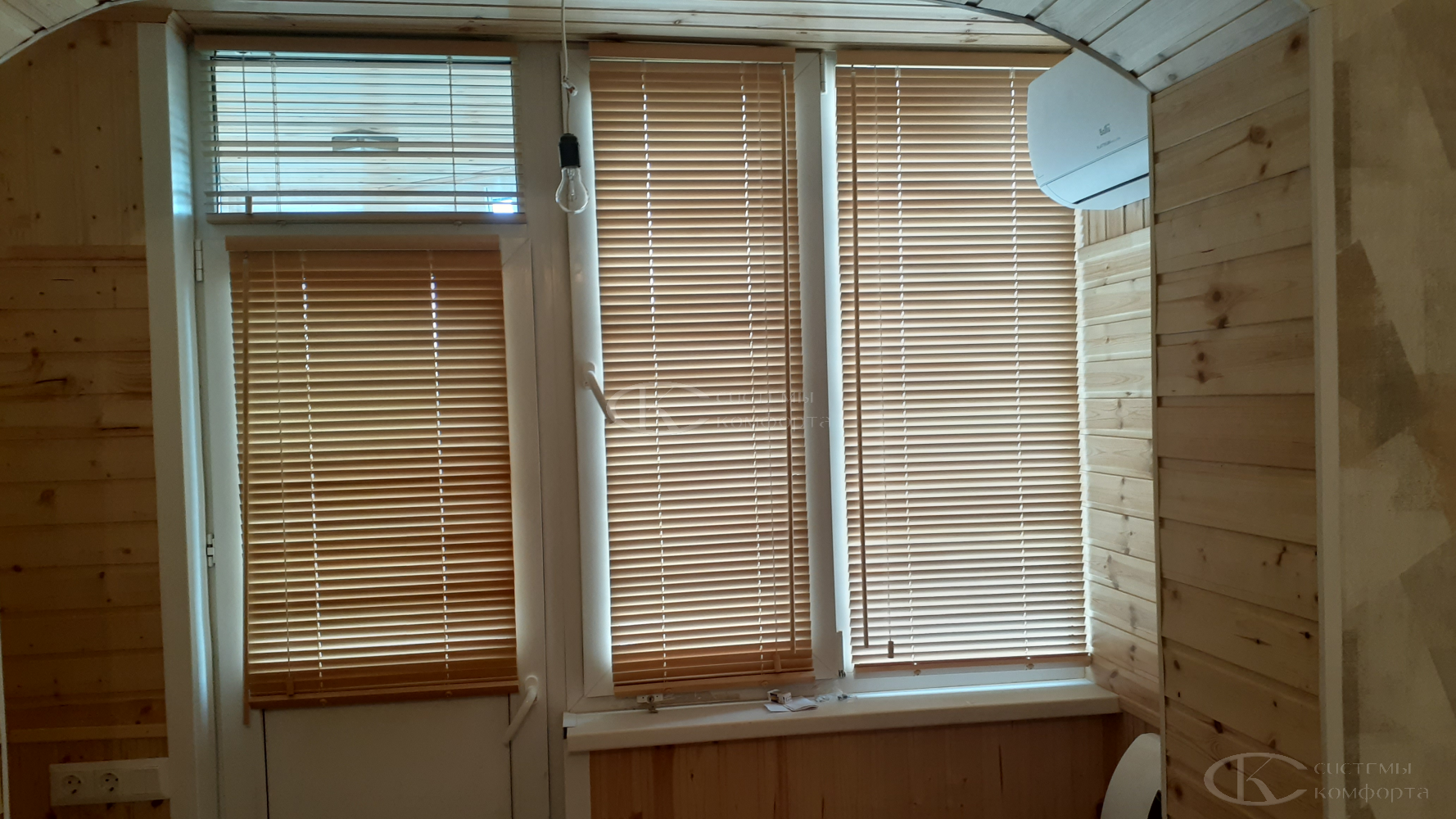- Тип системы. Горизонтальные алюминиевые – наиболее бюджетный вариант, деревянные, римские шторы или системы с электроприводом будут дороже.